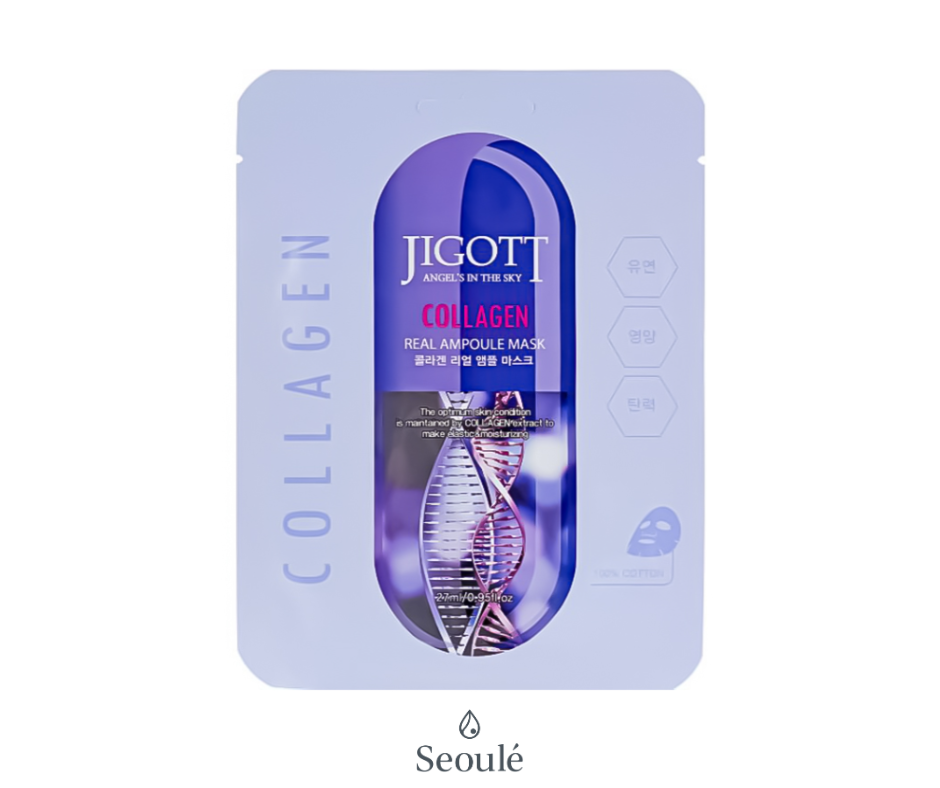 Jigott Collagen Real Ampoule Mask to nowoczesna maska w płachcie, która precyzyjnie odpowiada na potrzeby skóry, uzupełniając niedobór kolagenu. Dzięki niej cera odzyskuje naturalne piękno, sprężystość i elastyczność. Maska intensywnie napełnia skórę aminokwasami i witaminami, przywracając jej zdrowy blask, gładkość i promienny wygląd. Wykonana z ekologicznej bawełny, zapewnia maksymalny komfort i skuteczność.