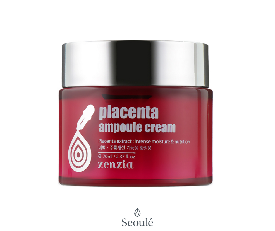 Zenzia Placenta Ampoule Cream to unikalny krem do twarzy na bazie fito-łożyska z soi, który intensywnie odżywia, nawilża i odmładza skórę. Produkt aktywuje syntezę kolagenu i elastyny, przywracając skórze jędrność i sprężystość. Dzięki bogactwu składników aktywnych krem skutecznie rozjaśnia przebarwienia, redukuje zmarszczki i zapewnia natychmiastowe ukojenie.